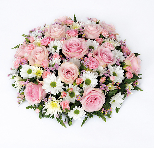 A gentle display of mixed pastel coloured posy pad hand crafted with Roses and Chrysanthemums.