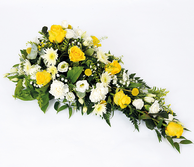 A spray of Roses, Delianne, Solidago, Gypsophila and Carnations.